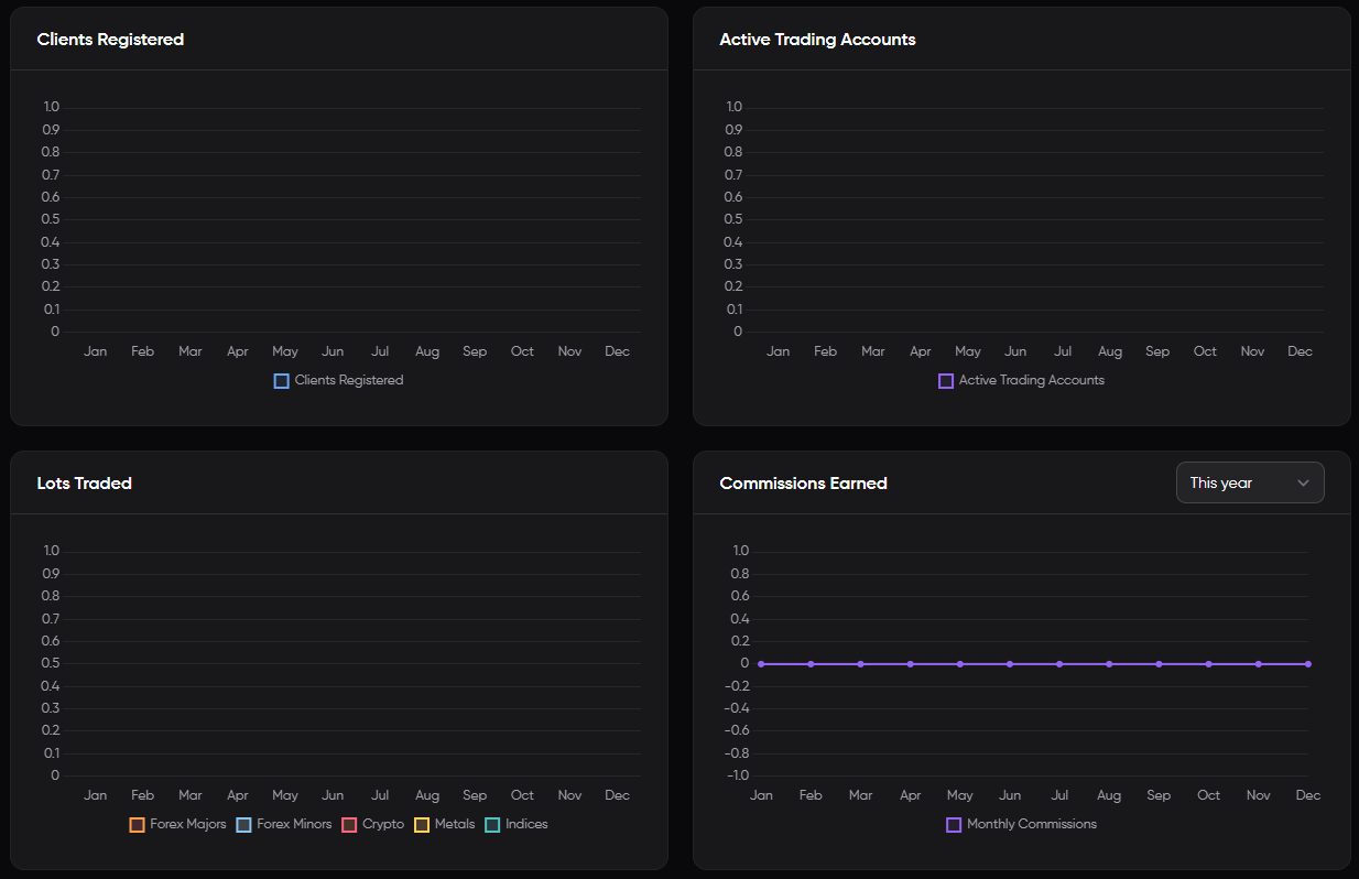 In qualità di Introducing Broker (IB) con Eurotrader, è possibile visualizzare rapidamente le prestazioni, l'attività del cliente e i guadagni — tutto in un unico luogo: la dashboard principale del portale partner.